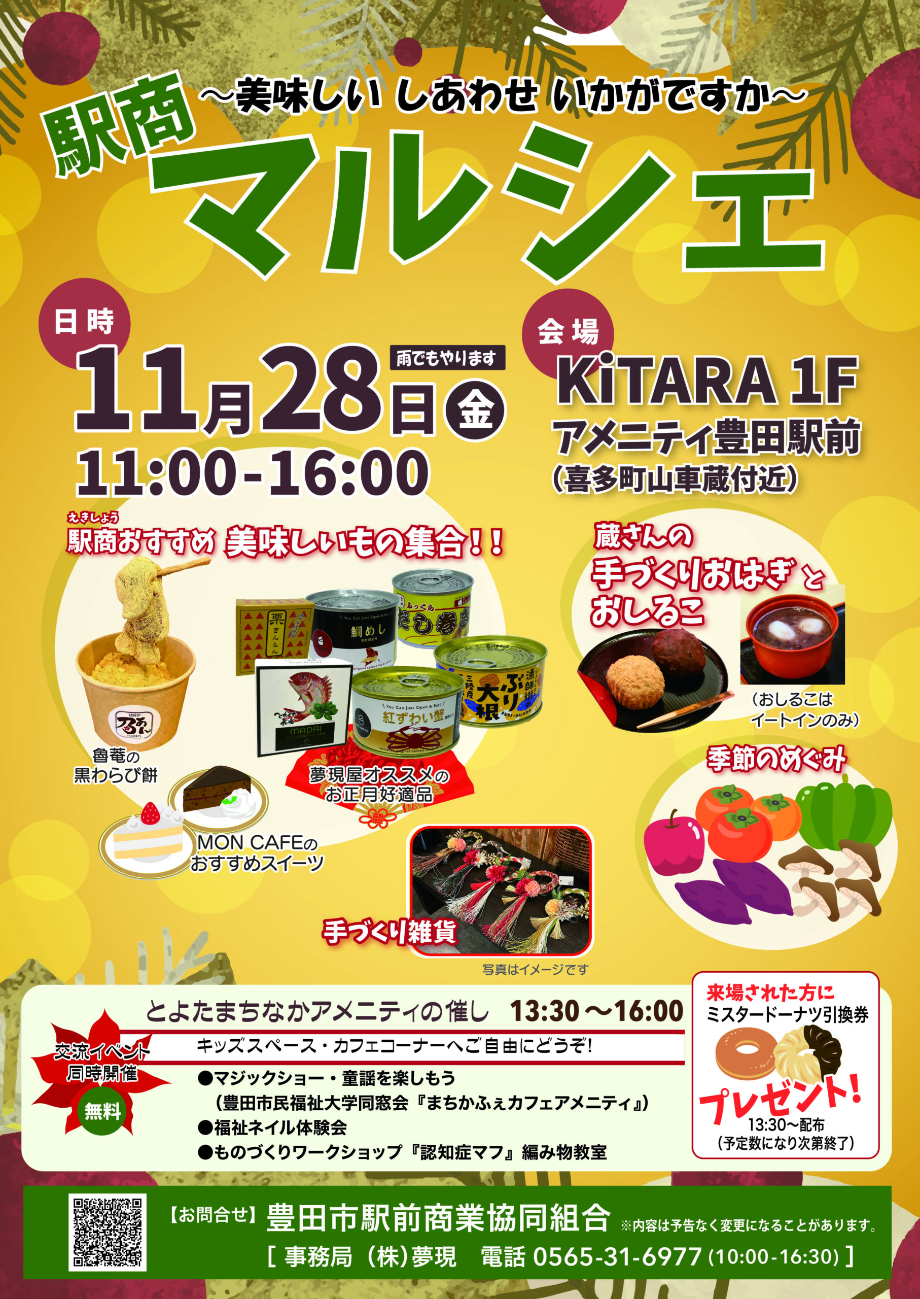 ◆場所:豊田市喜多町2-170 KiTARA1階アメニティ豊田駅前(喜多町山車蔵付近)